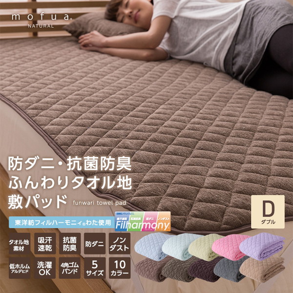 - mofua natural 防ダニ・ 抗菌防臭 ふんわりタオル地 敷パッド(東洋紡フィルハーモニィ(R)わた使用) ダブル ブルー