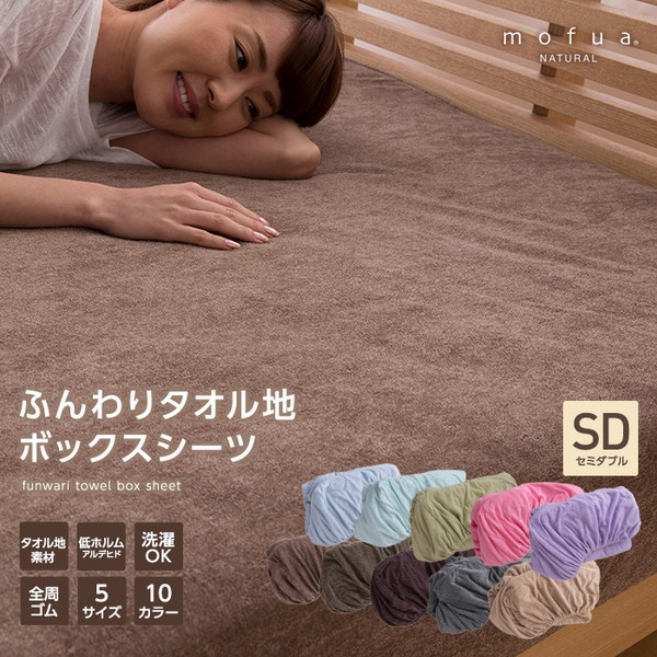- mofua natural ふんわりタオル地 ボックスシーツ セミダブル オリーブ