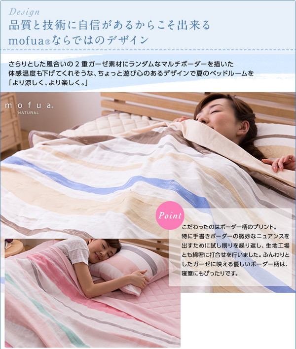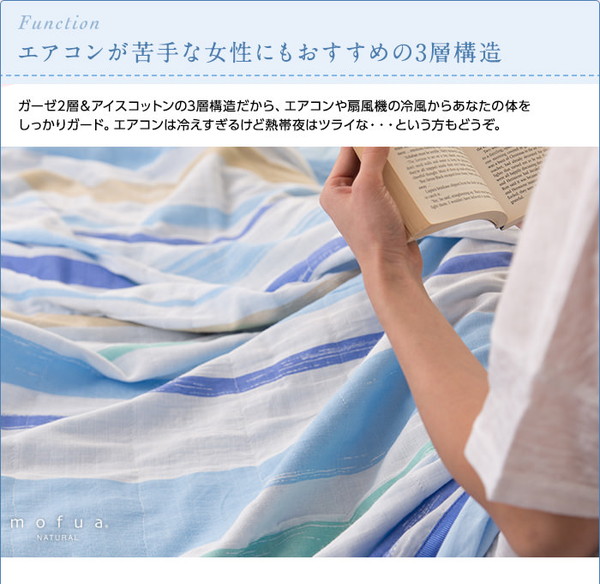- mofua(natural) 綿100% ICECOTTON&2重ガーゼ 3層涼感ガーゼケット シングル グリーン