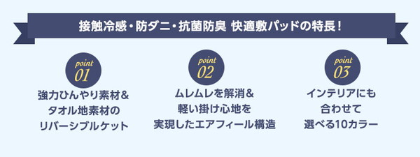 寝苦しい夏の快眠にこだわったひんやり新素材&サラサラパイルのリバーシブルケット。