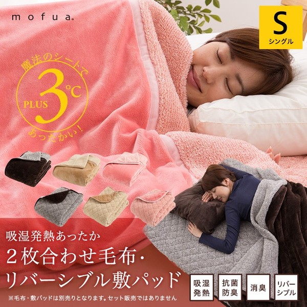 - mofua 吸湿発熱あったか2枚合わせ毛布 シングル ライトピンク