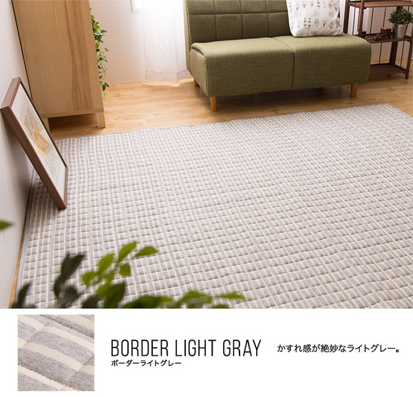 - mofua natural 肌になじむ天竺ニット 綿100%のキルトラグ 130×190cm ボーダーライトグレー
