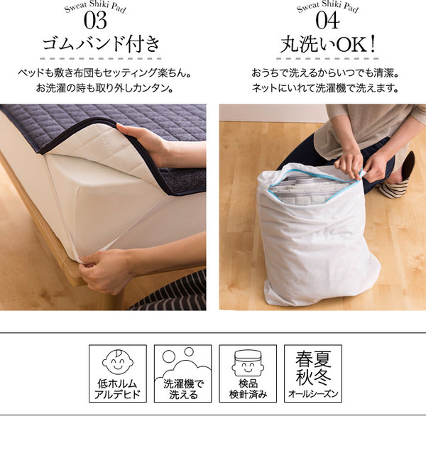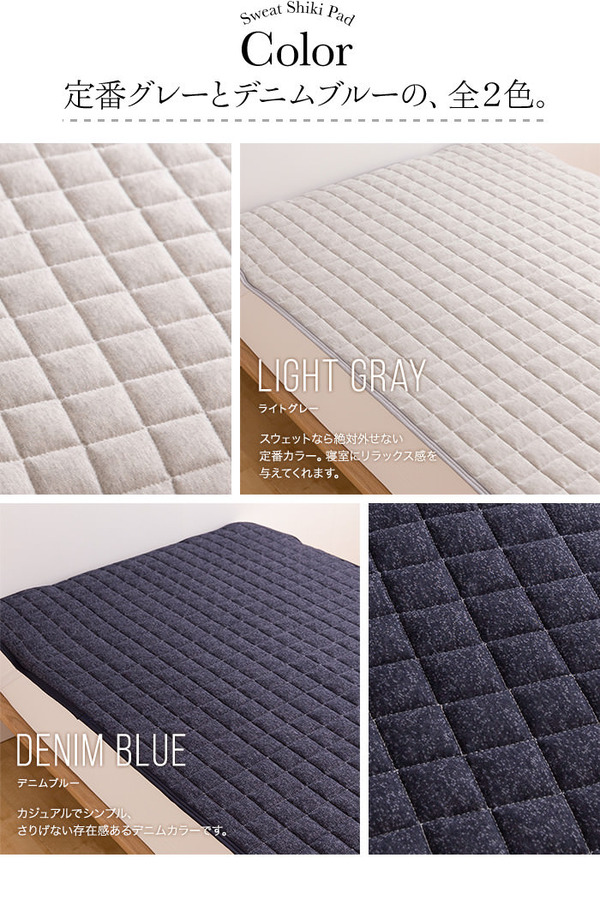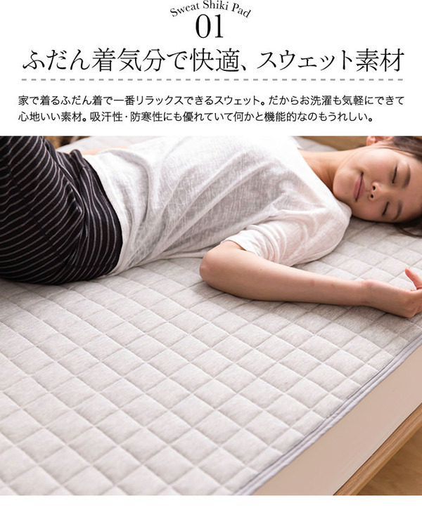 ふだん着のスウェットが心地よいに敷パッドになりました。杢素材の柔らかく優しい肌触り。汗もよく吸ってさらさらの寝心地です。