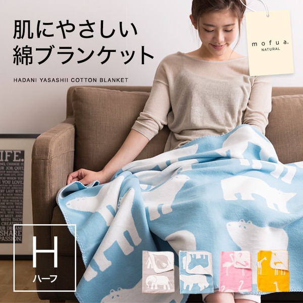 - mofua natural 肌にやさしい綿ブランケット(動物柄) H(ハーフケット) ゾウ