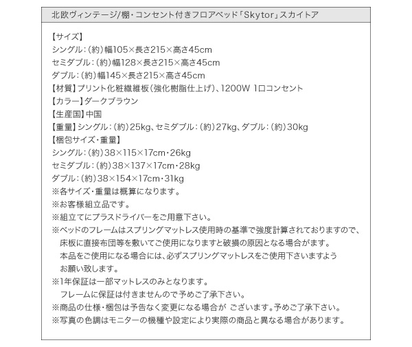 こちらは「フロアベッド セミダブル【Skytor】【マルチラススーパースプリングマットレス付き】 ダークブラウン 北欧ヴィンテージ/棚・コンセント付きフロアベッド【Skytor】スカイトア」の商品ページです。商品画像や説明文には色違いやサイズ違いの商品情報が載っている場合がございますのでご確認ください。