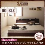 フロアベッド ダブル【Skytor】【羊毛入りデュラテクノマットレス付き】 ダークブラウン 北欧ヴィンテージ/棚・コンセント付きフロアベッド【Skytor】スカイトア
