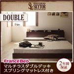 フロアベッド ダブル【Skytor】【マルチラスダブルデッキスプリングマットレス付き】 ダークブラウン 北欧ヴィンテージ/棚・コンセント付きフロアベッド【Skytor】スカイトア